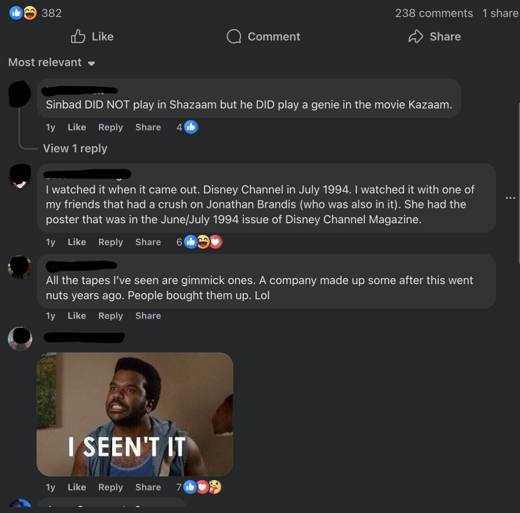 - Someone posts online: “Does anyone else remember a Sinbad genie movie called Shazaam?”